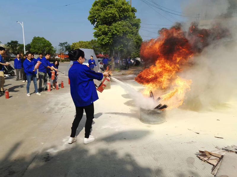 为了将所学知识付诸实践,“趁热打铁”在员工中普及灭火器的使用方法,培训结束后,在厂区门口操场上举行了多种灭火器灭火演练,过程中强调了各种灭火器的使用技巧和注意事项,各部门人员轮流进行实践操作,最终熟练掌握了灭火器的使用方法。