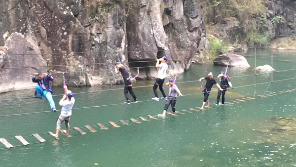 国庆假期,海创公司组织全体员工进行团建活动,选在山清水秀的文成大峡谷。